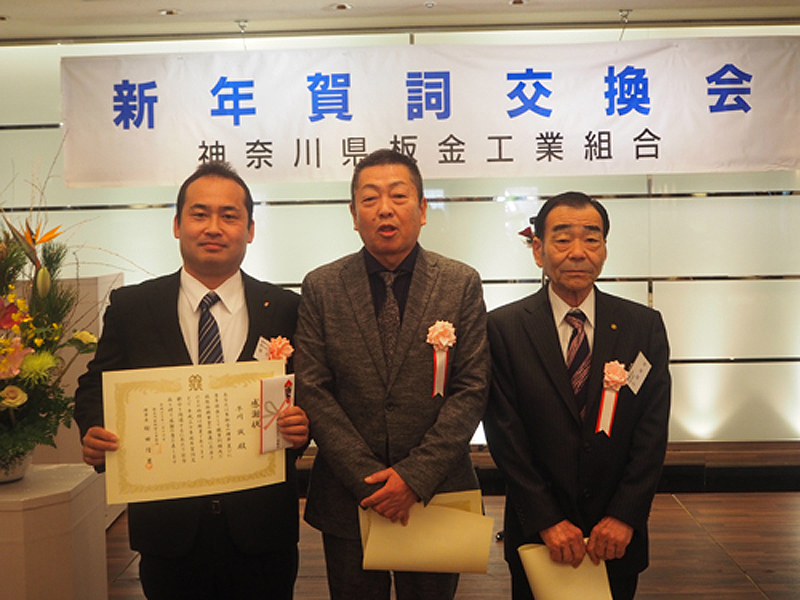 平成30年度の神奈川県板金工業組合 新年賀詞交換会で、組合事業発展の功績で感謝状をいただきました。