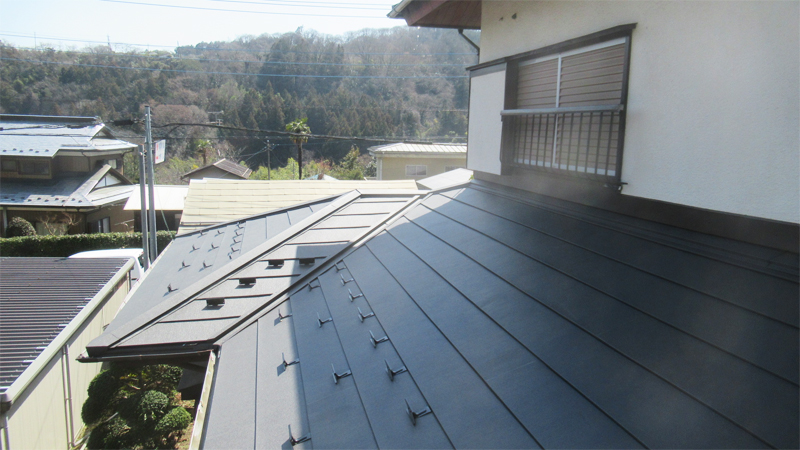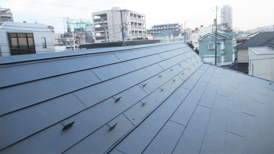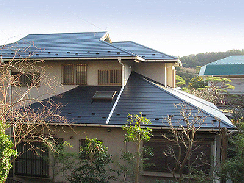 こちらのお宅では、ガルバリウム鋼板製の金属材で屋根を葺き替えました。