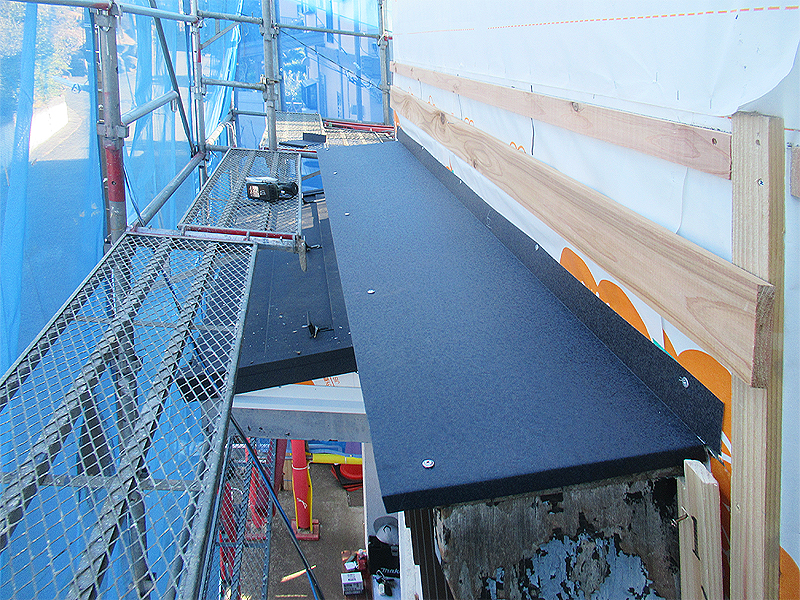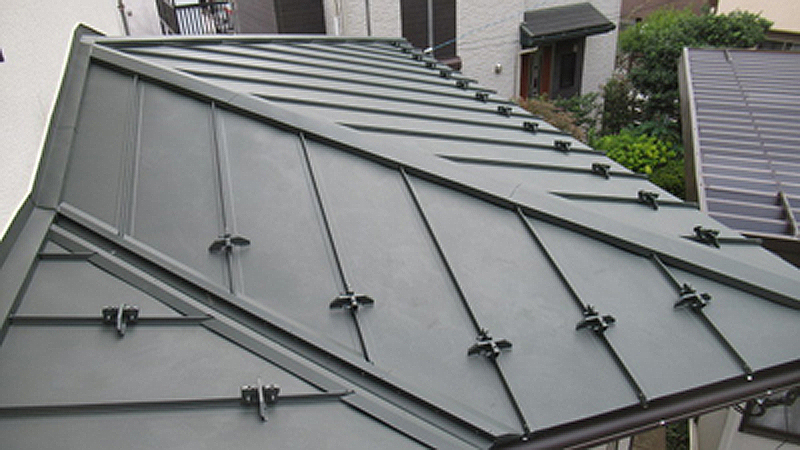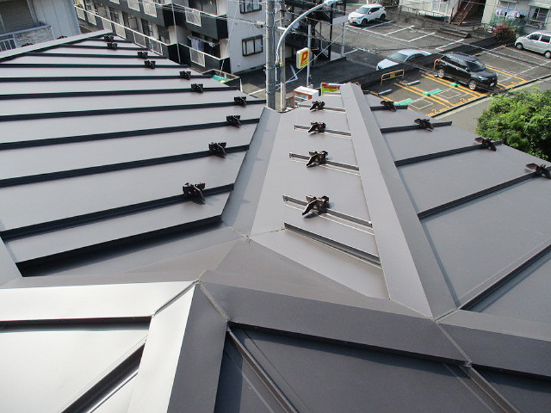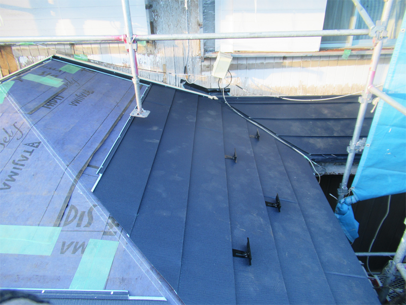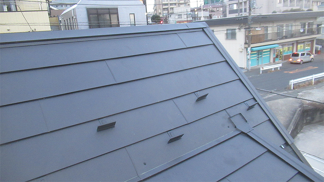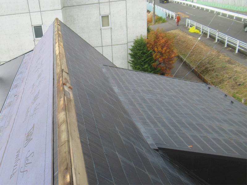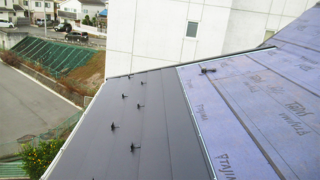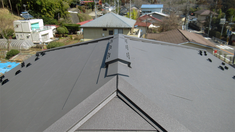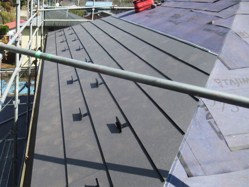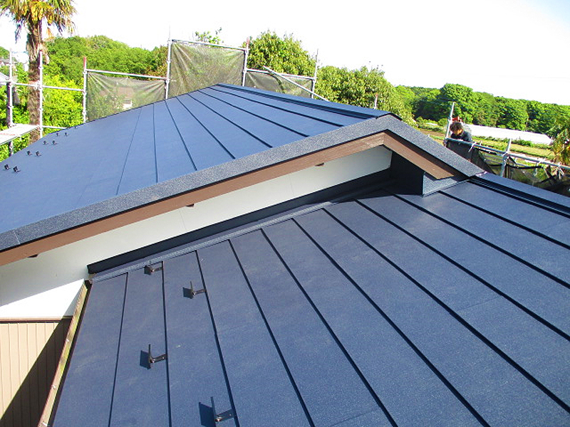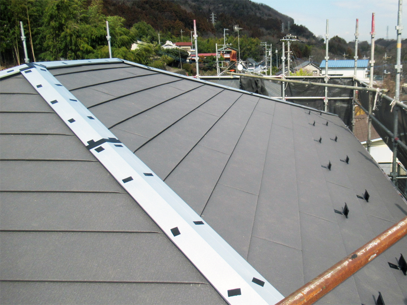 アイジー工業(株)製のスーパーガルテクト(Sシェイドチャコール色)で葺きました。