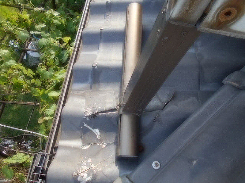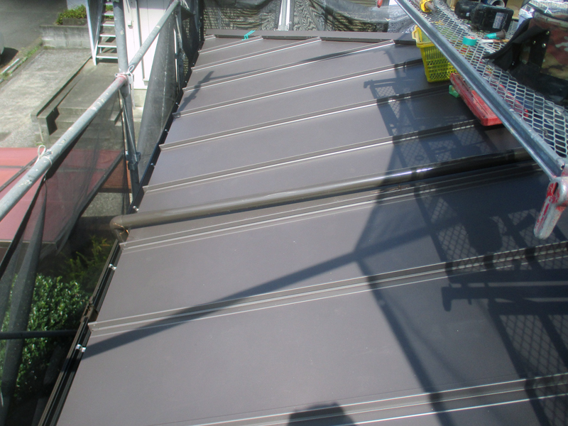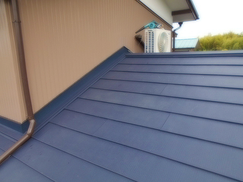 カバー工法で、アイジー工業(株)製のガルバリウム鋼板製の屋根材 スーパーガルテクトを葺き増ししました。