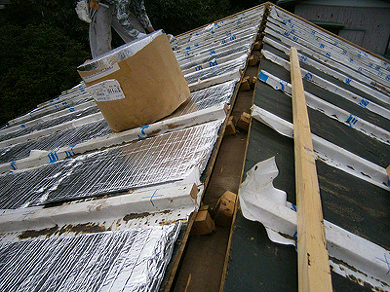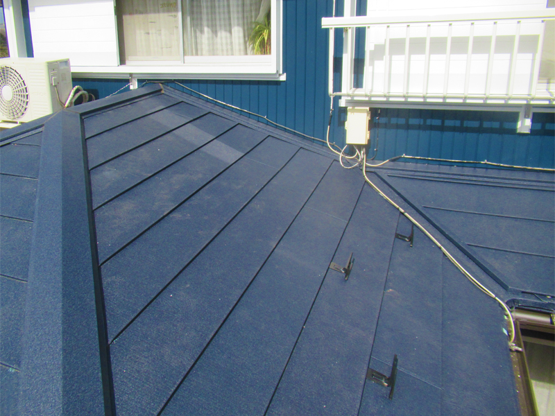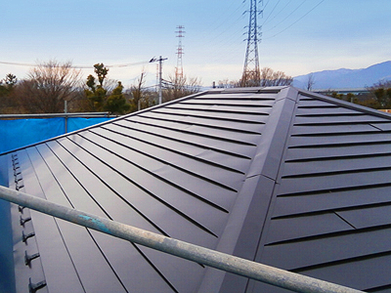 通気工法で、遮熱鋼板を使用したニチハ(株)製の横暖ルーフ「きわみ」で、葺き替えました。