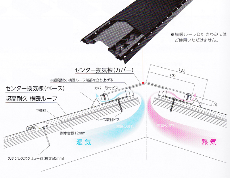 屋根頂部には熱気を逃がすスキマが、通っています。