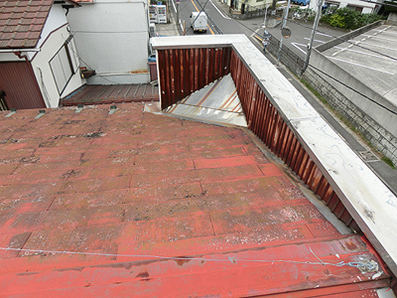 横浜市 港南区 K邸~元商店の建物、パラペット切妻屋根を改修工事