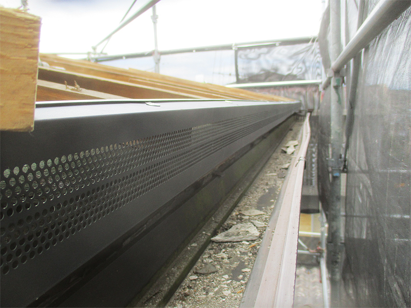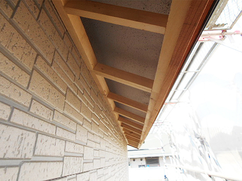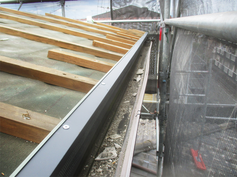 横暖ルーフ(ニチハ(株)製)に屋根を葺き替えて、軒天を施工し破風板をガルバリウム鋼板で巻きました。