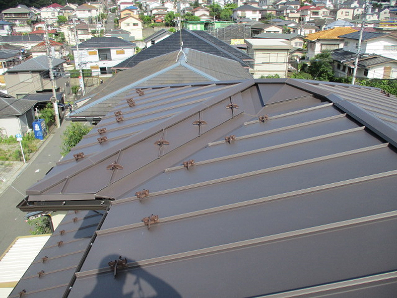 横浜市 戸塚区 S邸~古いかわらUを通気工法で金属屋根に葺き替え