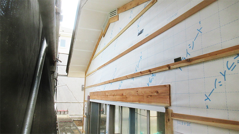 外壁材には、ガルバリウム鋼板のICリブナミ(稲垣商事(株)製)を採用しました。